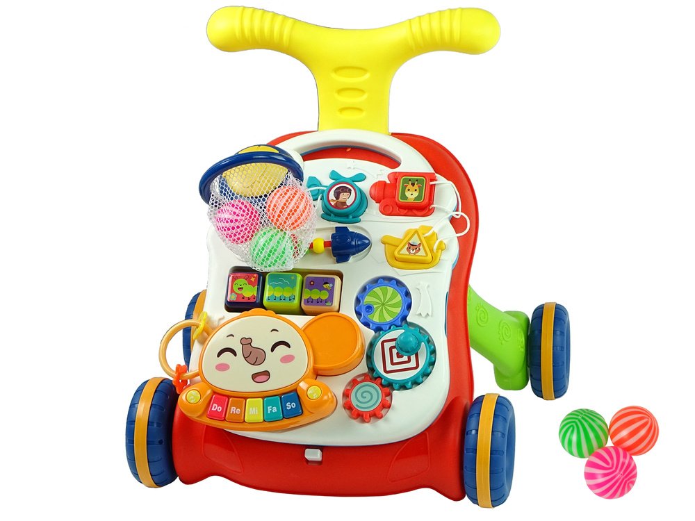 🚶♂️🎶 Interaktyvus 2‑in‑1 stumdukas ir edukacinis staliukas – raudonas
