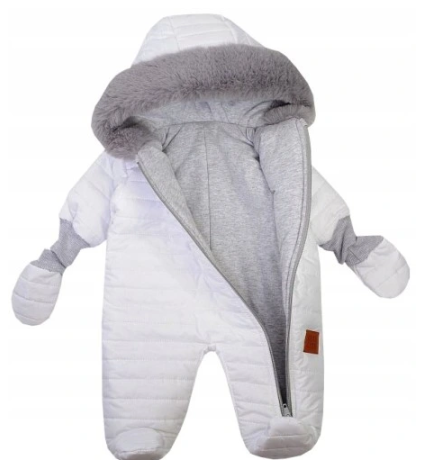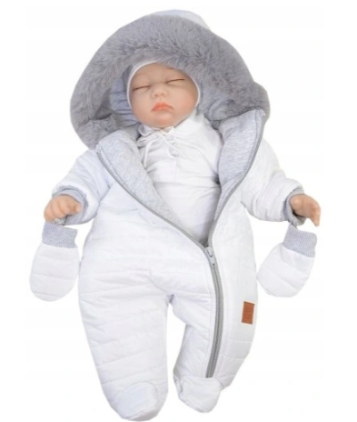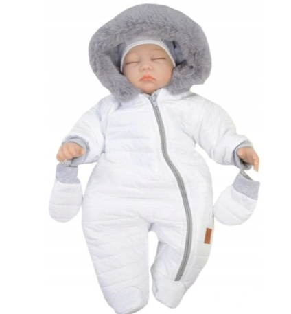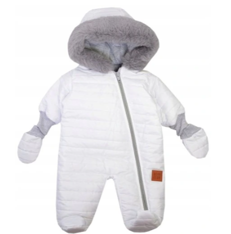 Baltas žieminis kombinezonas su kailiu