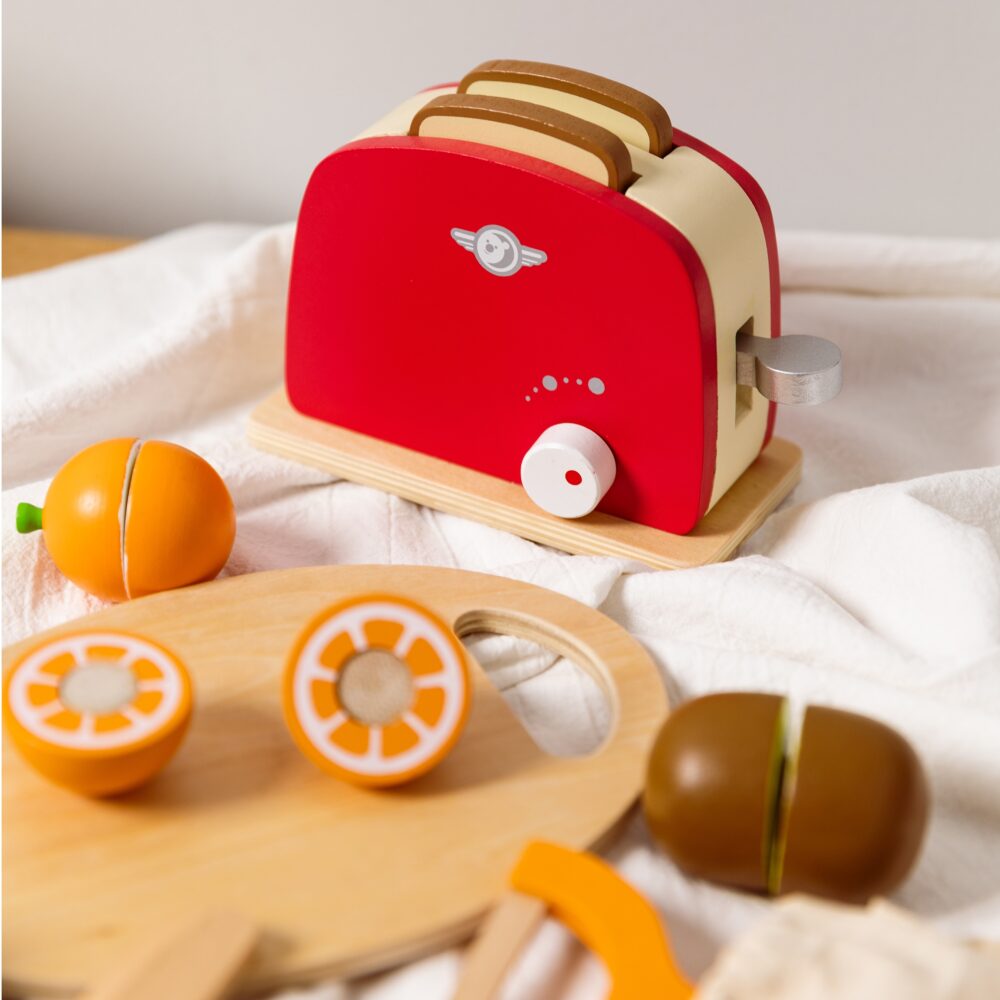 – Vaikai, kurie ypač mėgsta stebėti, kas vyksta virtuvėje, gali išbandyti savo jėgas prie medinės lentos su vaisiais, kurių dalys yra sujungtos su Velcro.