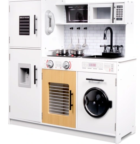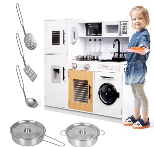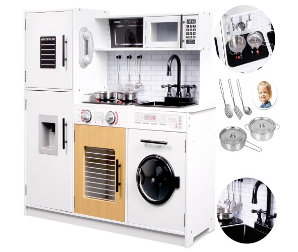 ⭐ Dizainas : Visas komplektas pagamintas iš lakuotos medienos, o naudojami dažai yra netoksiški ir saugūs vaikams. Prislopintos virtuvės spalvos pradžiugins kiekvieną vaiką ir užtikrins smagią žaidimo patirtį.
