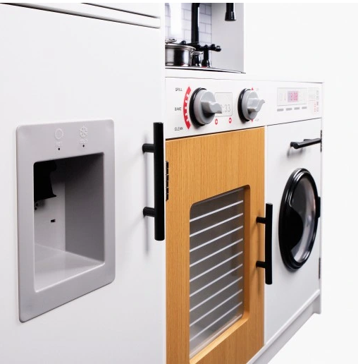 Skalbimo mašinos imitacija su atidaromomis durelėmis suteiks jūsų vaikui papildomo džiaugsmo.