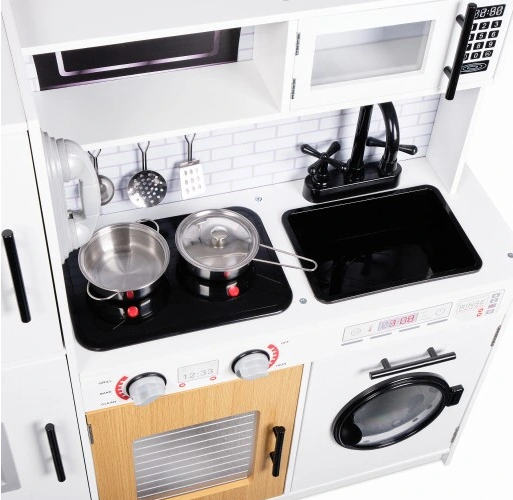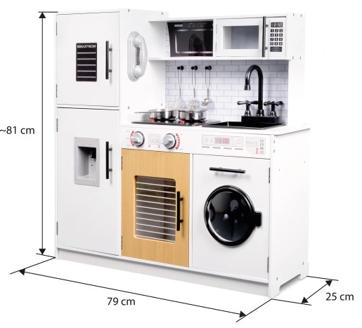 Virtuvė išsiskiria estetišku ir kruopščiu meistriškumu, todėl yra ne tik puikus žaislas, bet ir graži vaiko kambario puošmena.