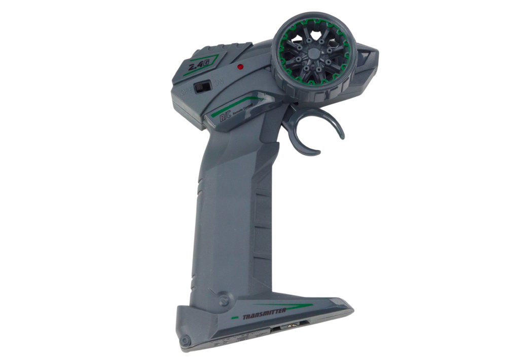 Valdymas vyksta per 2.4G nuotolinio valdymo pultą, kuris leidžia tiksliai kontroliuoti kiekvieną judesį ir atlikti sudėtingus manevrus be trikdžių.