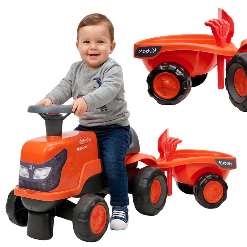 FALK „Kubota Baby Ride-On Tractor“ – tai mažyliams nuo 12 mėnesių skirtas važiuojamas traktorius, sukurtas pirmiesiems judėjimo, stūmimo ir balansavimo įgūdžiams lavinti. Jis tinkamas naudoti tiek namuose, tiek lauke.