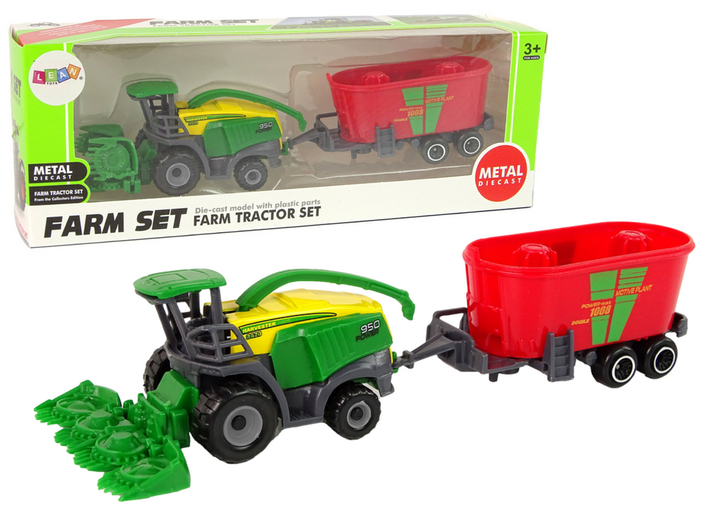 Žalias Kombainas Su Raudona Priekaba – Kompaktiška Žemės Ūkio Mašina Kūrybiškam Ūkininkavimo Žaidimui