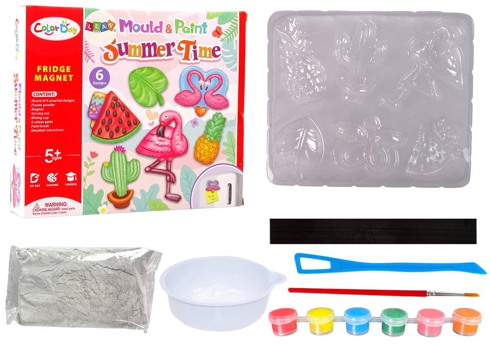 Kūrybiškumas vaikams ypač svarbus tuomet, kai jie pradeda daugiau bendrauti su bendraamžiais. Bendras kūrybinis užsiėmimas stiprina tarpusavio ryšius, moko bendradarbiauti ir suteikia daug džiaugsmo. Šis „pasidaryk pats“ rinkinys kviečia vaikus kurti vasariškus magnetukus iš gipso – flamingus, arbūzus, ananasus, kaktusus ir lapus.