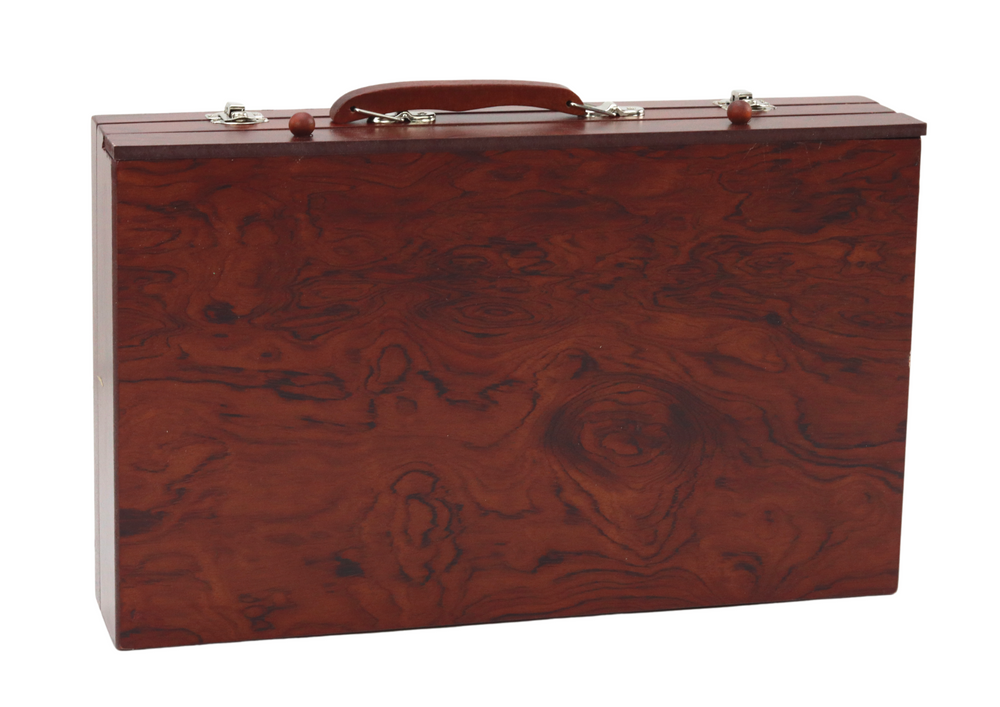 123 kūrybos priemonės viename tvirtame mediniame lagamine