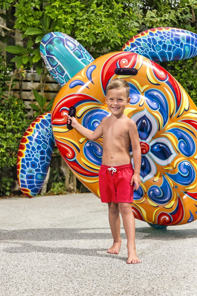 Pasiruoškite vasaros pramogoms, kurios pradžiugins tiek vaikus, tiek suaugusiuosius! Pripučiamas Bestway vėžlio formos čiužinys – tai ne tik patogi vieta atsipalaiduoti, bet ir įspūdinga vandens atrakcija, kuri tikrai išsiskirs paplūdimyje ar prie baseino. Ryškus majolikos stiliaus raštas ir realistiška vėžlio forma traukia akį ir kviečia žaisti.