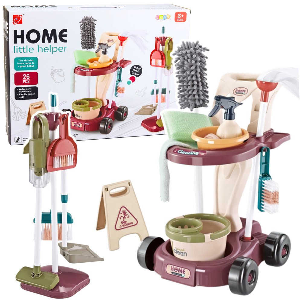 ✔️ 26 dalių komplektas – daug įvairių valymo įrankių ✔️ Realistiški priedai – šluota, kibiras, šepečiai, purkštuvas, šluostės ✔️ Žaislinis dulkių siurblys – dar daugiau interaktyvumo ✔️ Vežimėlis ir stovas – patogiam laikymui ir tvarkai ✔️ Lavina motoriką, koordinaciją, atsakomybę ✔️ Puikiai tinka vaidmenų žaidimams ✔️ Saugus, tvirtas plastikas