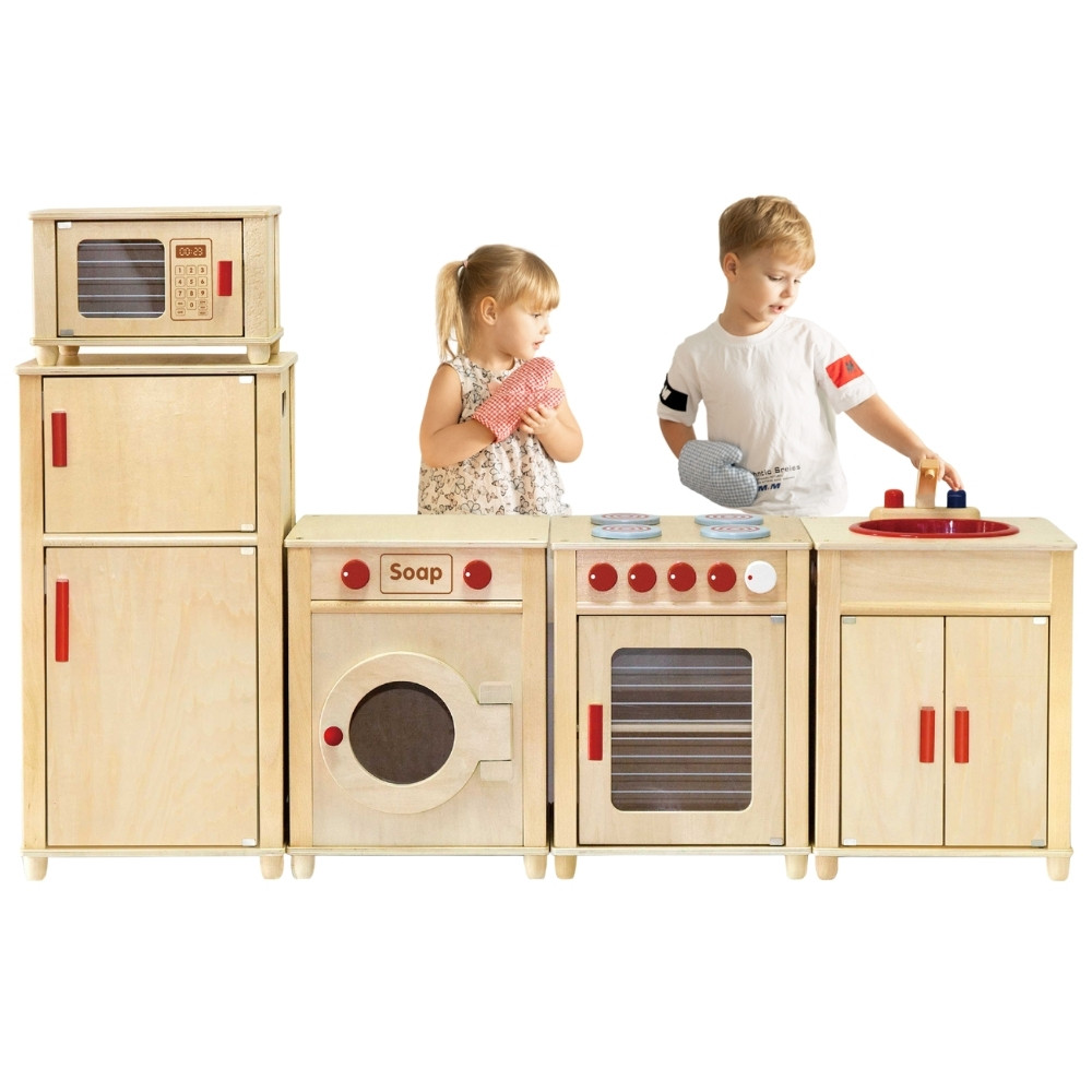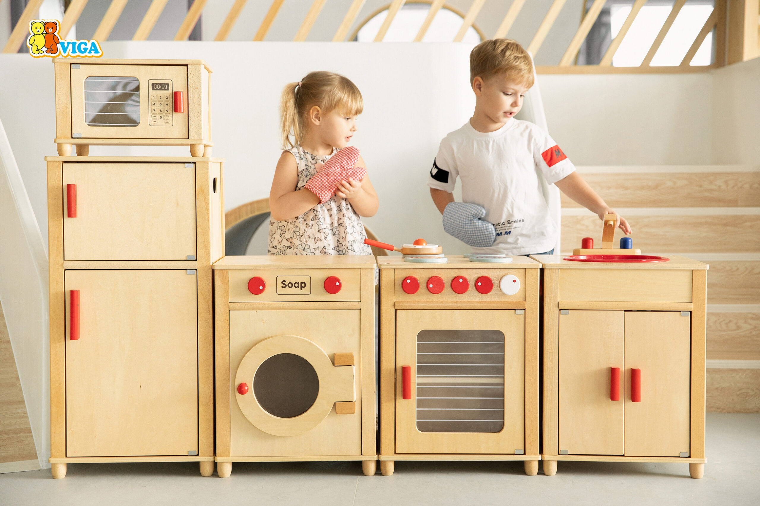 VIGA medinis „Natural Large Kitchen Set“ yra didelis žaidimų virtuvės komplektas, leidžiantis keliems vaikams žaisti vienu metu. Tai puikus žaidimų kampelis vaikams nuo 3 metų, skirtas vaidmenų žaidimams ir kasdienio gyvenimo imitavimui.