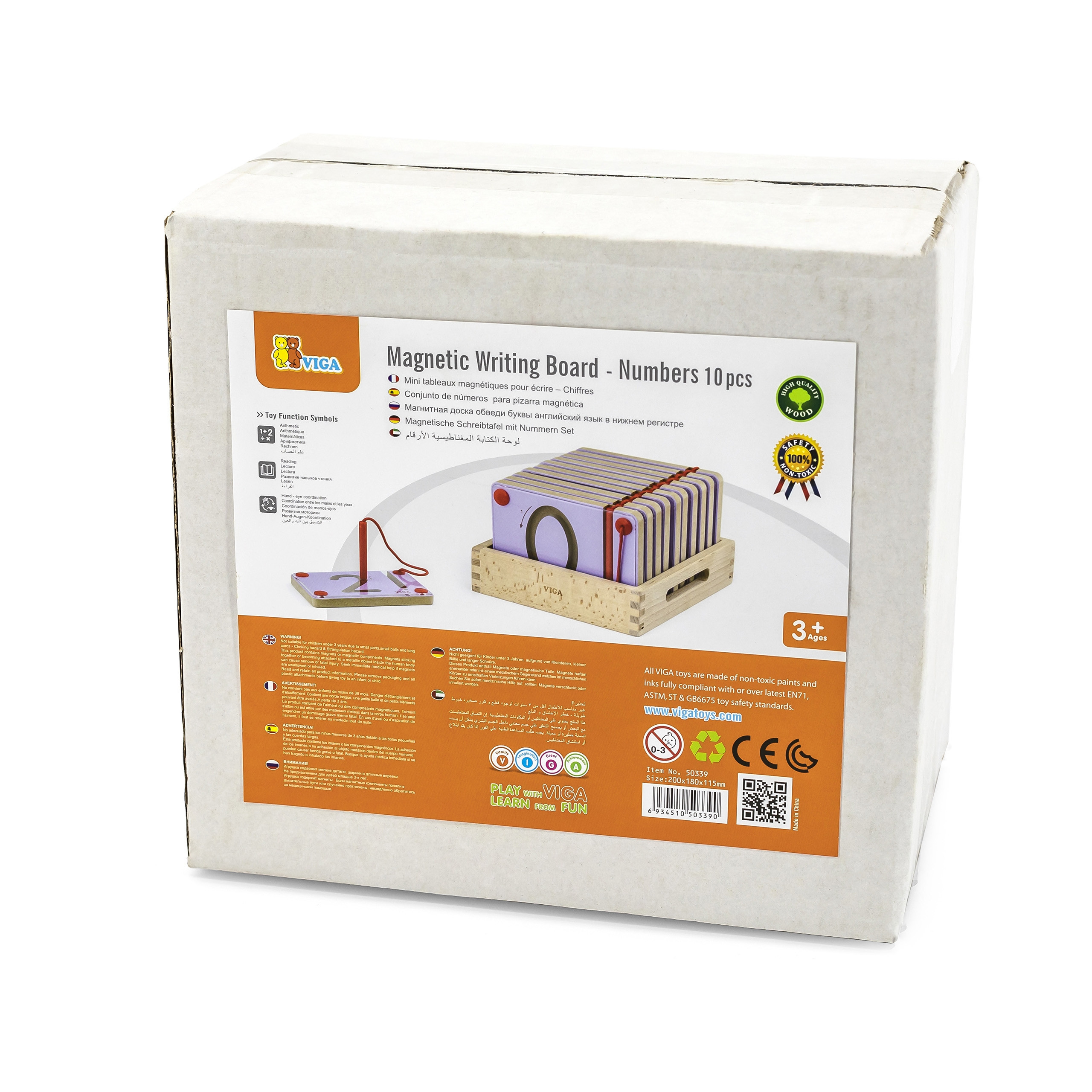 VIGA medinės skaičių lentos – puiki priemonė mokytis pagrindinės matematikos. Padedami tėvų ar pedagogų, vaikai ne tik išmoksta skaičius ir jų sudarymą, bet ir pradeda mokytis juos rašyti. Turint šiek tiek vaizduotės, šias lentas galima naudoti ir kuriant paprastas matematines užduotis, taip žaidimą išplečiant iki sudėties, atimties ir net sudėtingesnių skaičiavimų mokymosi.