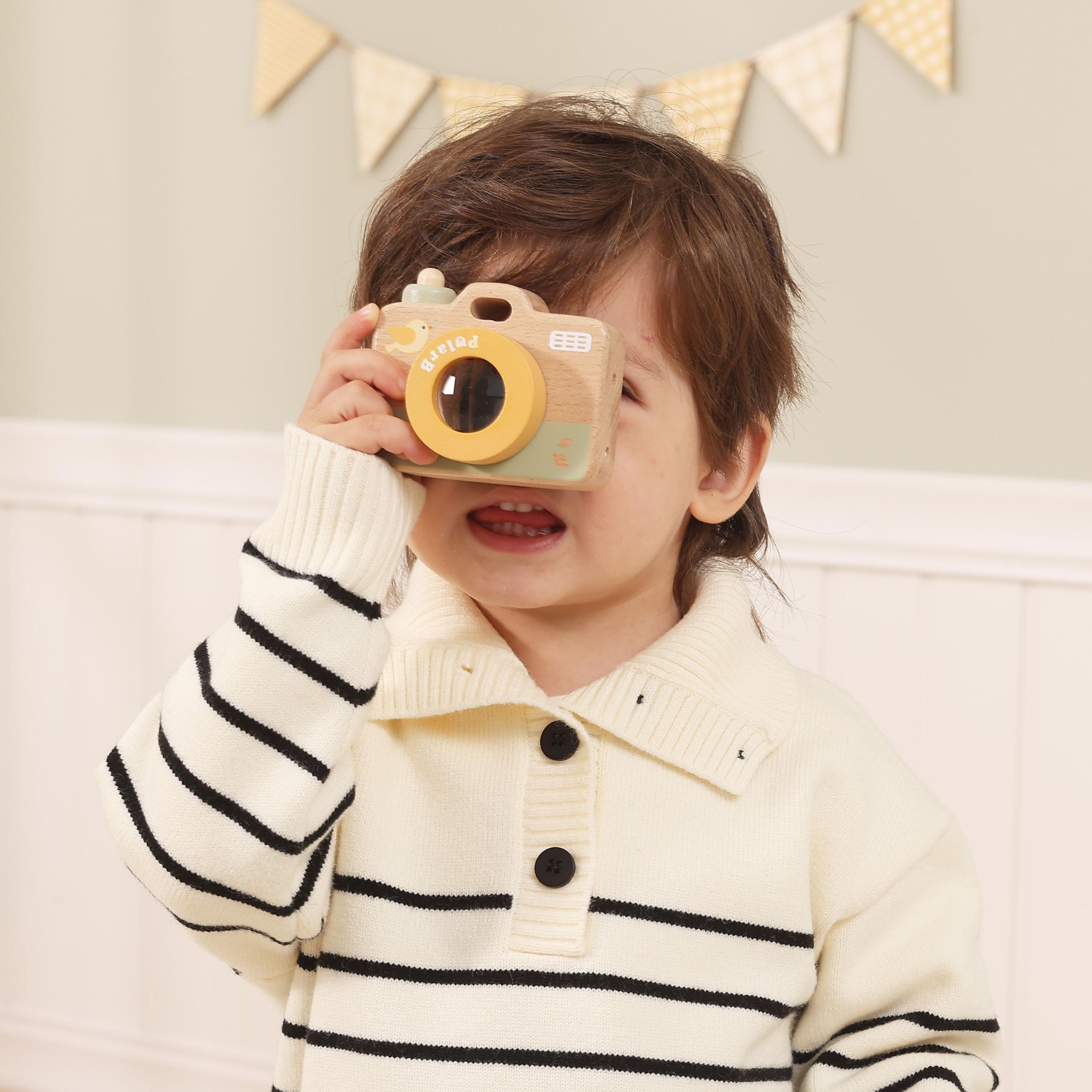„VIGA My First Camera“ – tai edukacinis medinis fotoaparatas mažiesiems, sukurtas skatinti smalsumą, vaizduotę ir sensorinį pasaulio pažinimą. Dėl kaleidoskopinio lęšio vaikai gali matyti spalvingus, besikeičiančius vaizdus ir tyrinėti šviesos bei formų efektus.