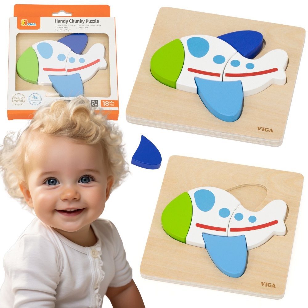 Atraskite mokymosi stebuklą su šia lėktuvo formos Viga dėlione, kuri kviečia vaikus tyrinėti pasaulį. Ši unikali dėlionė sukurta specialiai mažoms rankytėms, siūlant puikų pramogos ir smulkiosios motorikos lavinimo derinį. Ryškios, gyvos spalvos ir patogus dizainas iš karto patraukia vaiko dėmesį, skatindami pirmuosius savarankiškus pasiekimus. Suapvalinti kraštai ir storos detalės užtikrina saugų ir patogų žaidimą. Tai puiki dovana, palaikanti vaiko raidą.