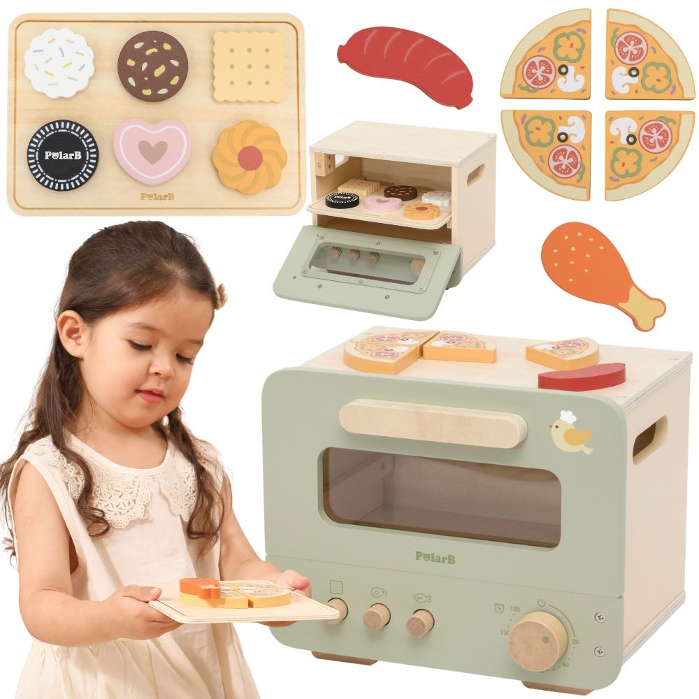 Leiskite savo vaikui tapti tikru šefu su žavingu mediniu saldžių ir sūrių patiekalų kepimo rinkiniu iš VIGA! Šis inovatyvus rinkinys, sukurtas kaip moderni skrudintuvas/orkaitė madingos žalios spalvos, puikiai tinka vaidmenų žaidimams virtuvėje. Rinkinį sudaro 12 realistiškų medinių maisto aksesuarų, įskaitant skanius sausainius, mini picą (supjaustytą į 4 gabalėlius), dešrelę ir vištienos blauzdelę. Orkaitė turi atidaromą dangtį, judančius mygtukus ir ištraukiamą padėklą, todėl žaidimas tampa itin autentiškas. Kepimas ir gaminimas ne tik suteikia daug pramogos, bet ir intensyviai lavina smulkiąją motoriką, rankų ir akių koordinaciją, kūrybiškumą bei socialinę sąmoningumą. Su šiuo rinkiniu vaikai gali imituoti suaugusius, mokytis patiekti ir dalintis maistu. Tai puikus papildymas bet kuriai medinei virtuvei, užtikrinantis valandas saugaus ir lavinančio žaidimo!