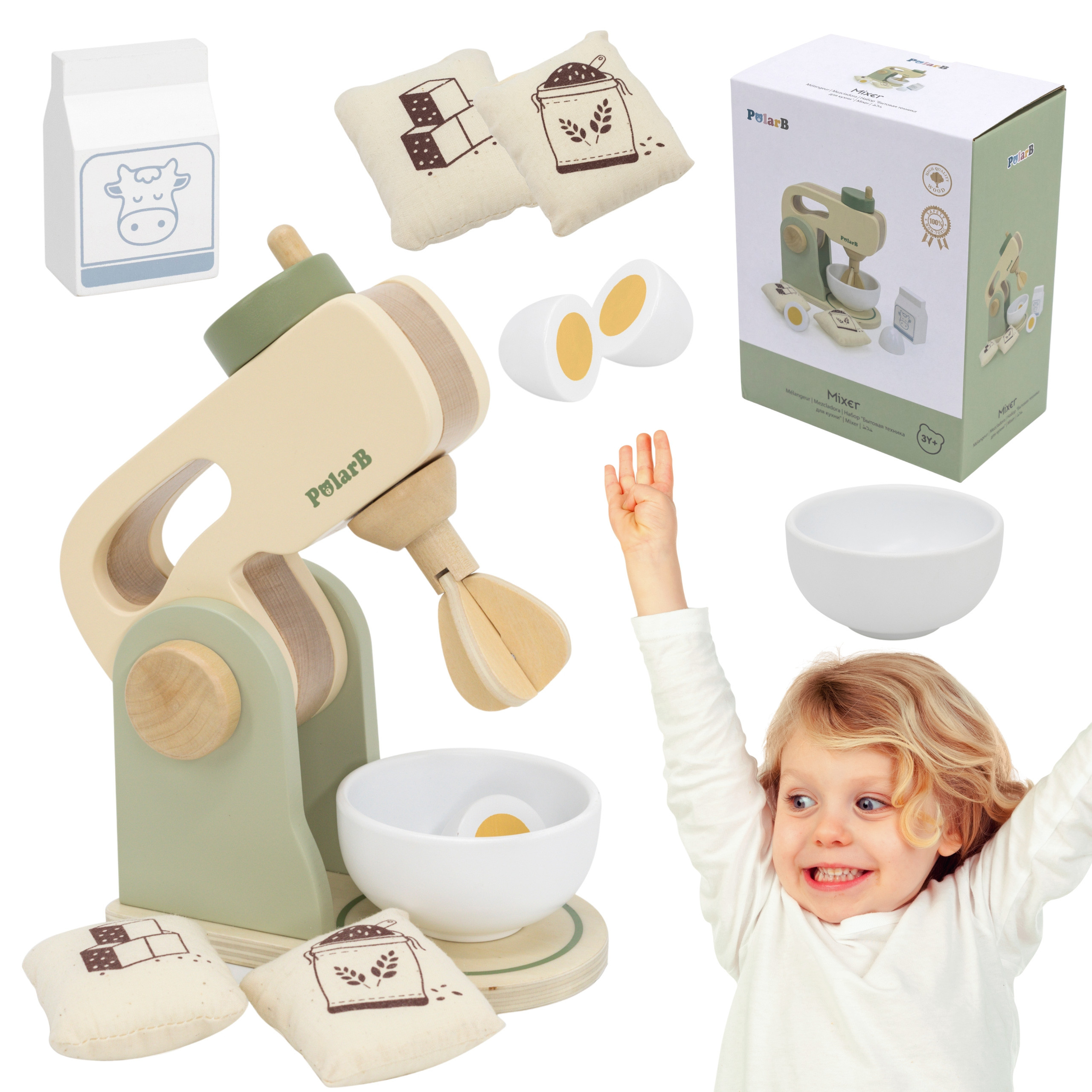 Žalias maišytuvas bus puikus papildymas žaidimų virtuvėlėje ar ikimokyklinio ugdymo kampelyje ir leis jūsų vaikui smagiai tobulinti kulinarinius įgūdžius namuose. Šis medinis žaislas taip pat skatina vaidmenų žaidimus bei stiprina bendravimą su kitais vaikais per bendrą žaidimą.