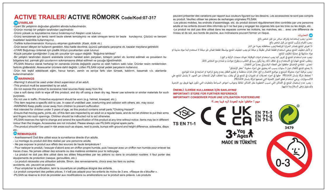 Priekaba sukurta aktyviam lauko žaidimui, su patvariais ratais ir ergonomišku dizainu.