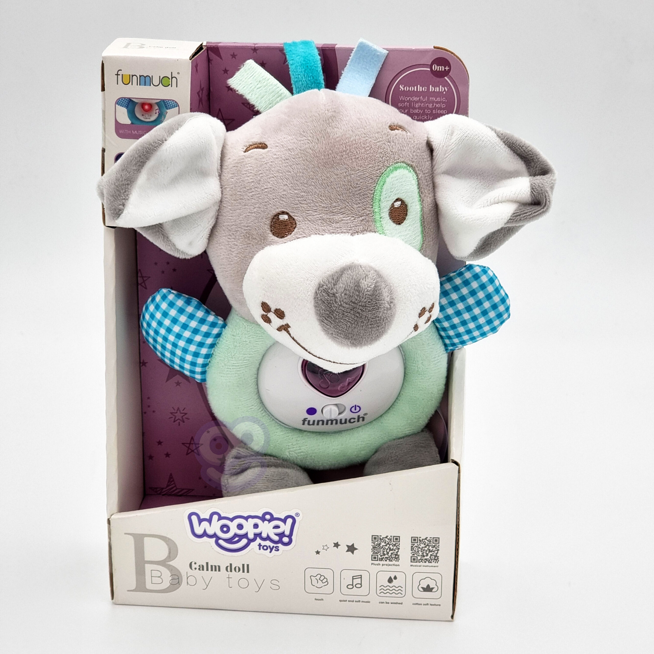 Šis minkštas „WOOPIE BABY“ pliušinis šuniukas sukurtas padėti vaikui nusiraminti ir lengviau užmigti. Jis groja lopšinę ir skleidžia švelnius šviesos efektus, kurie sukuria ramią, jaukią atmosferą. Dėl minkšto audinio ir medvilninio užpildo žaislas yra saugus net patiems mažiausiems.