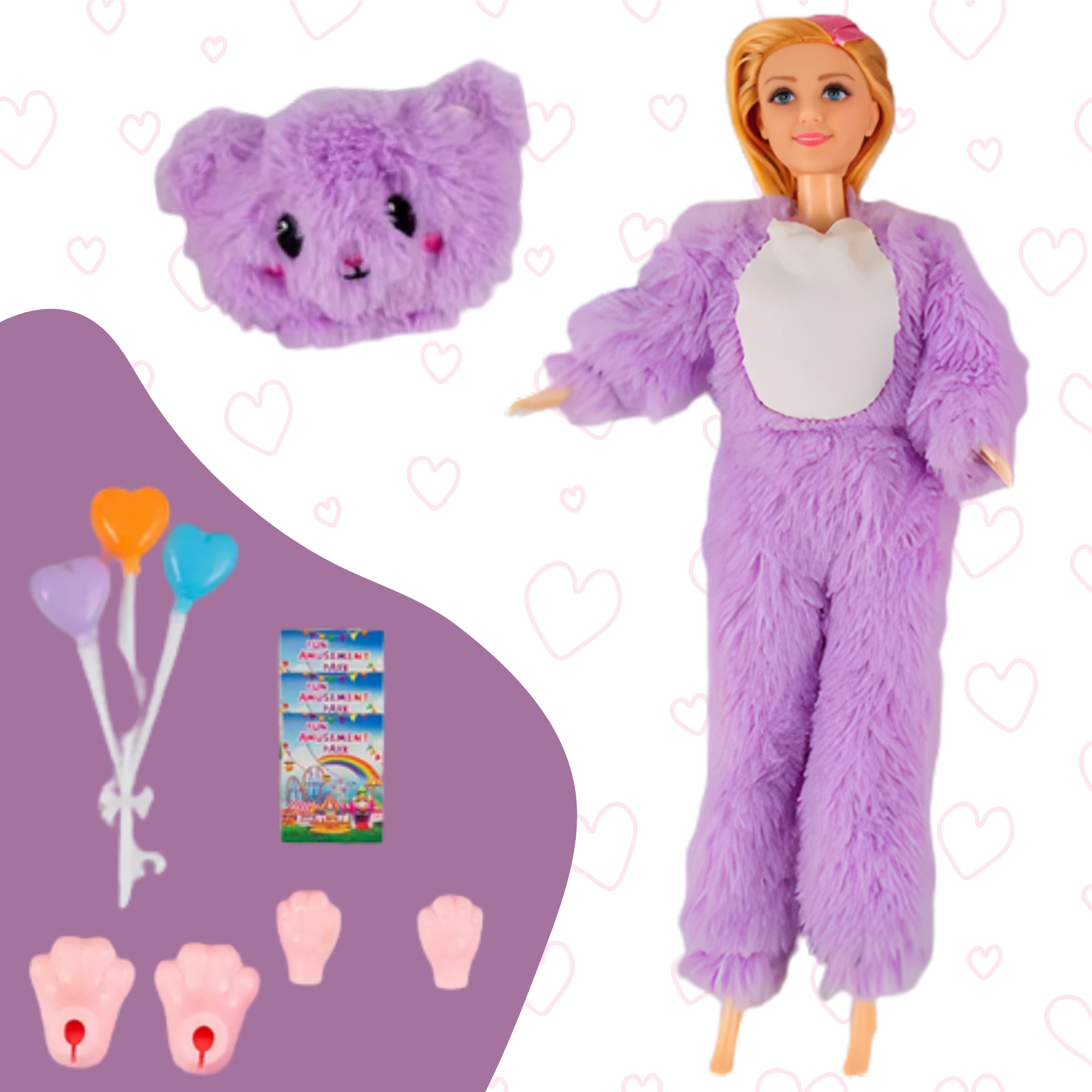 Leisk vaikui pasinerti į spalvų, linksmybių ir fantazijos pasaulį su WOOPIE ROYAL lėle Meškute, kuri dievina laiką pramogų parke! Lėlė vilki mielą, minkštą violetinio meškiuko kostiumą, kurį galima lengvai nuimti ir pakeisti jos stilių.