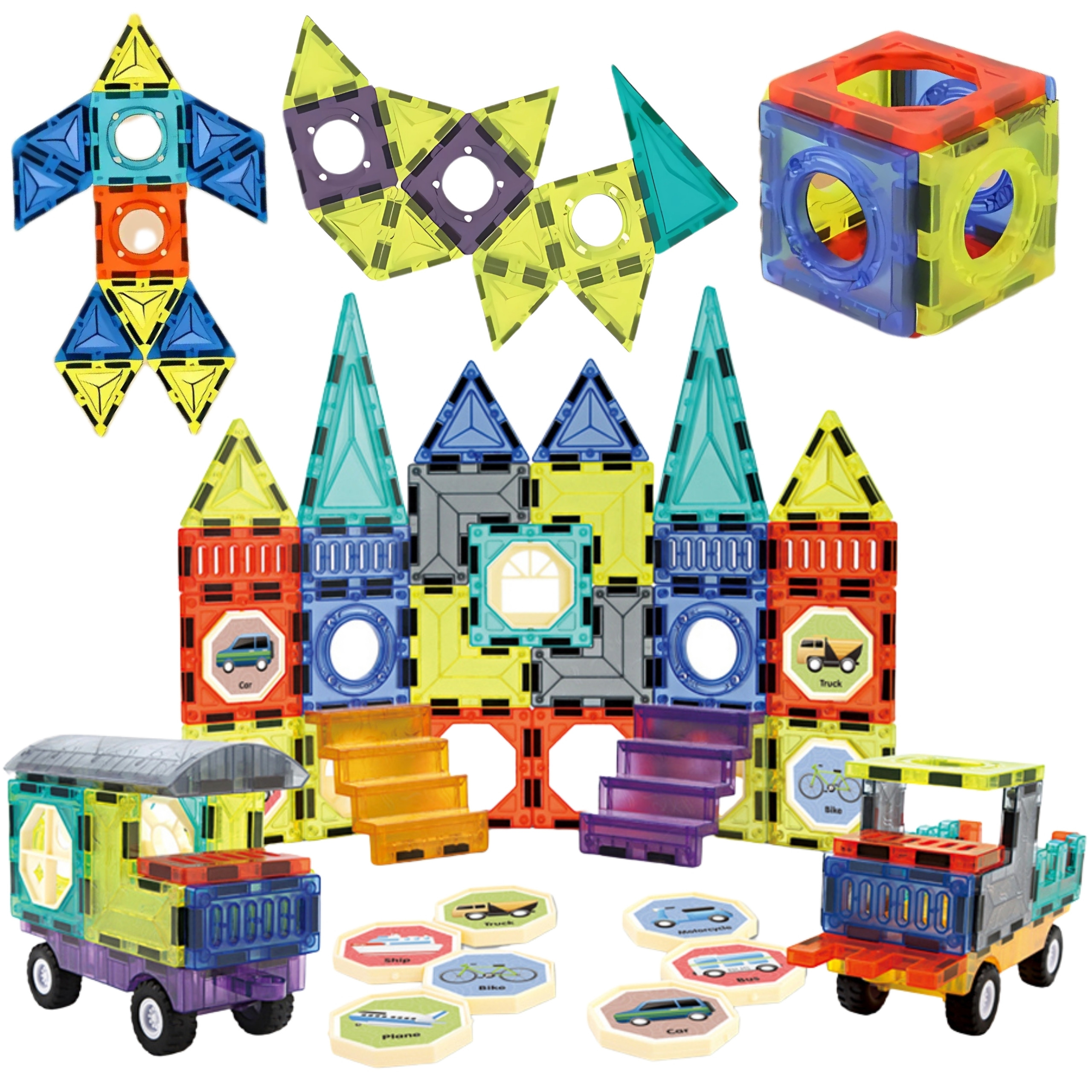 „WOOPIE magnētiskais 3D klucīšu komplekts – pils un transportlīdzekļi (71 gab.)