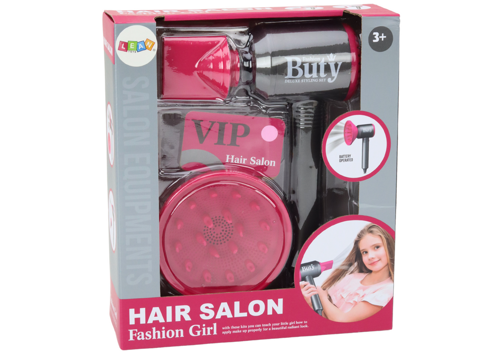 Žaislinis Plaukų Džiovintuvas Vaikams – Su Difuzoriumi, Antgaliu Ir VIP Kortelėmis (3+)