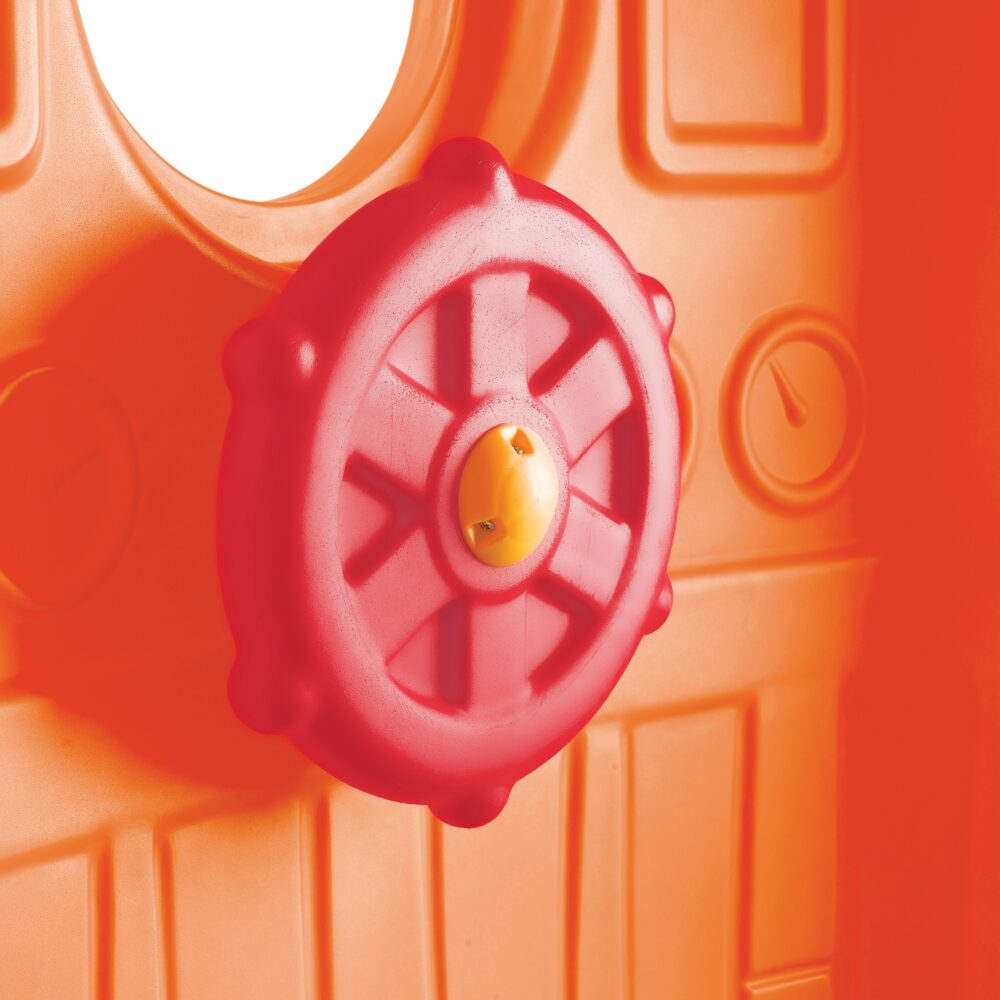 – name yra kopėčios su dideliais laipteliais , turėklai lipimui palengvinti, apvalus langas, stoglangis, vairas ir švelni čiuožykla, kurios ilgis yra 98 cm