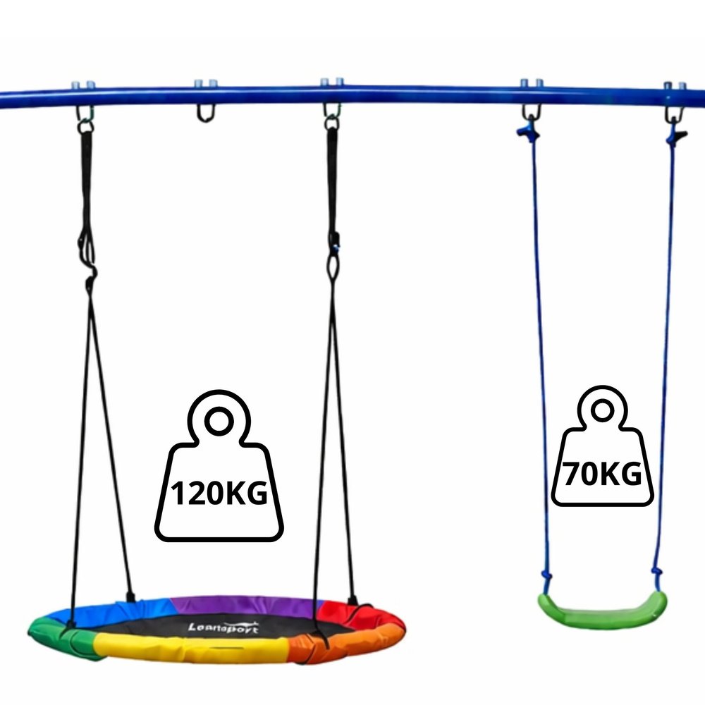 Ši 4-in-1 sodo žaidimų aikštelė – modernus ir universalus lauko žaidimų rinkinys, suteikiantis vaikams daugybę aktyvaus judėjimo ir pramogų galimybių. Komplekte yra klasikinės supynės, gandro lizdo tipo supynės ir krepšinio lankas, todėl vaikai gali rinktis skirtingas veiklas pagal nuotaiką.