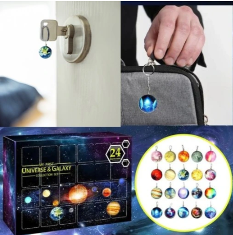 Atraskite magišką kosmoso pasaulį kartu su savo vaiku su mūsų Advento kalendoriumi! Tai ne šiaip eilinis kalendorius, o tikras žinių ir pramogų lobynas . Kiekvieną dieną jūsų vaikas atidaro langą, atrasdamas naują planetos raktų pakabuką . Tai puikus būdas suderinti mokymąsi su pramogomis, ugdant vaiko susidomėjimą astronomija ir mokslu. Dėl aukštos kokybės gamybos mūsų kalendorius tarnaus ilgus metus , o patrauklus dizainas pavers jį puošniu bet kurio vaiko kambario akcentu.