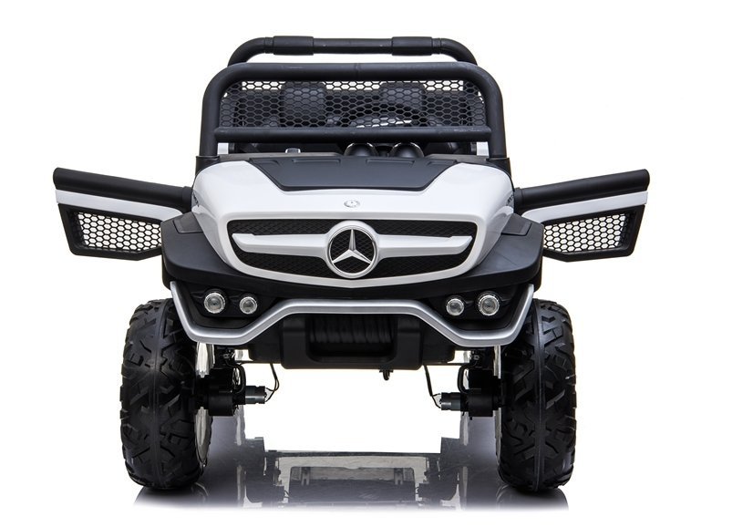 ⚪🚙 Akumuliatorinis automobilis vaikams Mercedes Unimog 4×4 – baltas, su 2.4G pulteliu