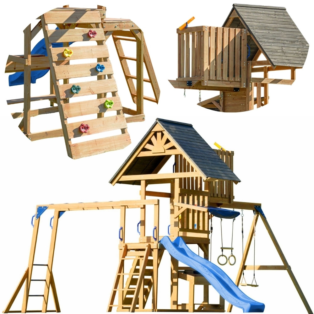 AXI Mitch žaidimų bokštas – didelė medinė žaidimų aikštelė su čiuožykla, sūpynėmis, laipiojimo siena ir bokštu