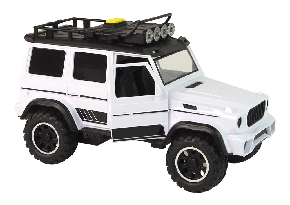 Šis 1:14 mastelio baltas visureigis – puikus žaislas vaikams, mėgstantiems nuotykius, tyrinėjimus ir aktyvų žaidimą. Švelni balta spalva ir draugiškas dizainas suteikia modeliui žaismingumo, o tvirtos konstrukcijos detalės leidžia jam įveikti įvairias „trasas“.