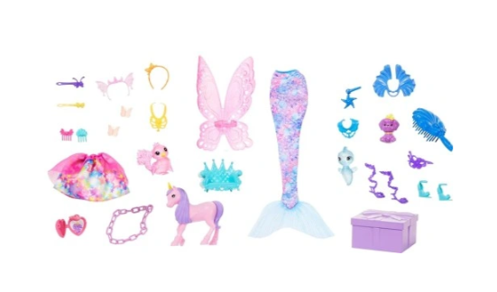 Vaikai gali paversti Barbės lėlę undine, karališkąja asmenybe ar fėja, atrasdami tokias detales kaip undinės uodega, ilgas sijonas ar prisegami sparnai.
