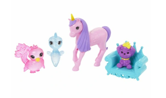 Tarp fantastiškų draugų, kuriuos galite rasti, yra vienaragio minifigūrėlė, žavingas šuniukas ir du fantastiški augintiniai, bei augintinio guolis!