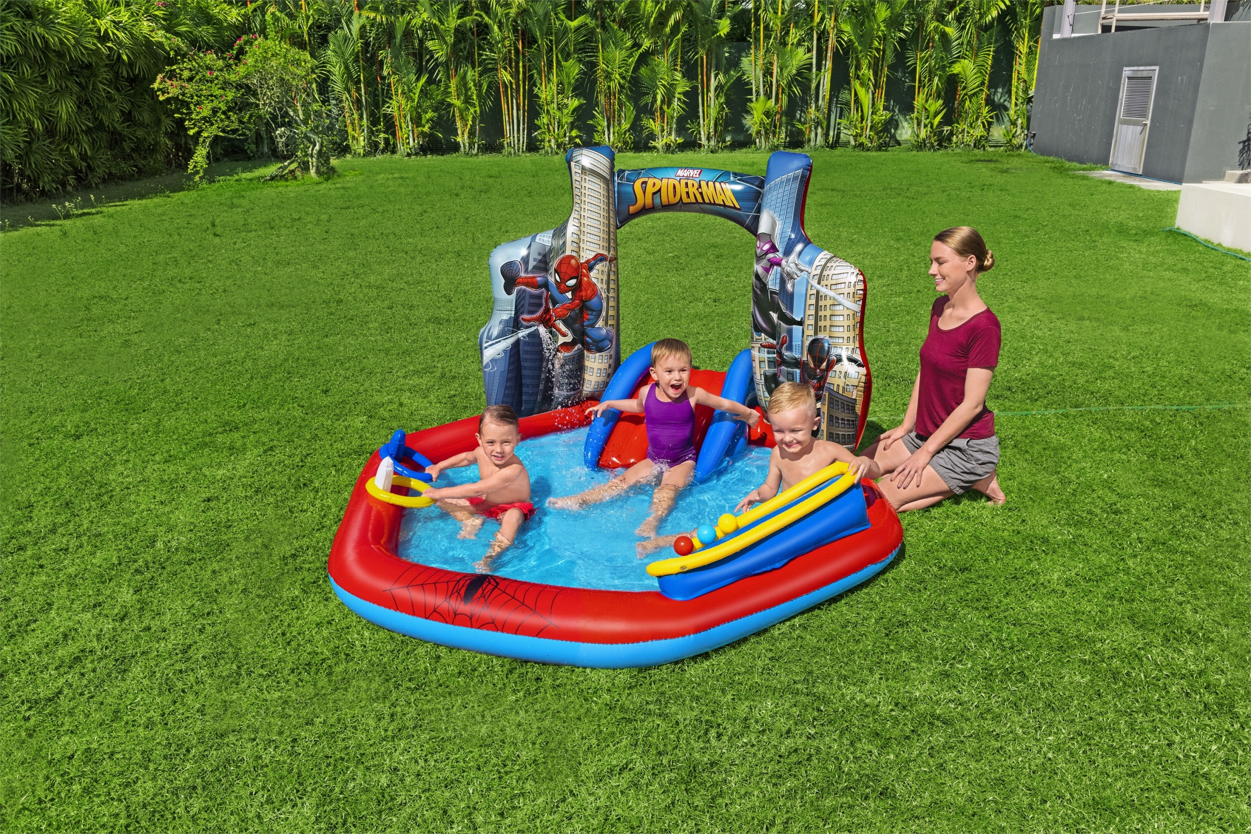 ♂️ Žmogus-voras yra puikių pramogų sergėtojas – dinamiška grafika ir teminiai aksesuarai su superherojų motyvu skatina vaikų vaizduotę ir teikia aktyvias pramogas visą vasarą.