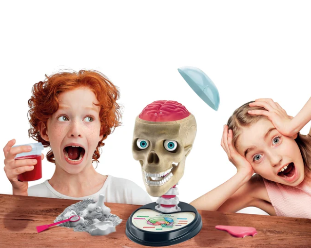 „Scientific Fun Crazy Anatomy“ – tai žaismingas, kūrybiškas ir kartu mokslinis rinkinys, leidžiantis vaikams pažinti žmogaus anatomiją visiškai nauju būdu. Vaikai gali surinkti žmogaus kaukolės modelį, sukurti želė konsistencijos smegenis, įstatyti sukamus akių obuolius, pritvirtinti plastikinius dantis ir suformuoti gipsines stuburo dalis.