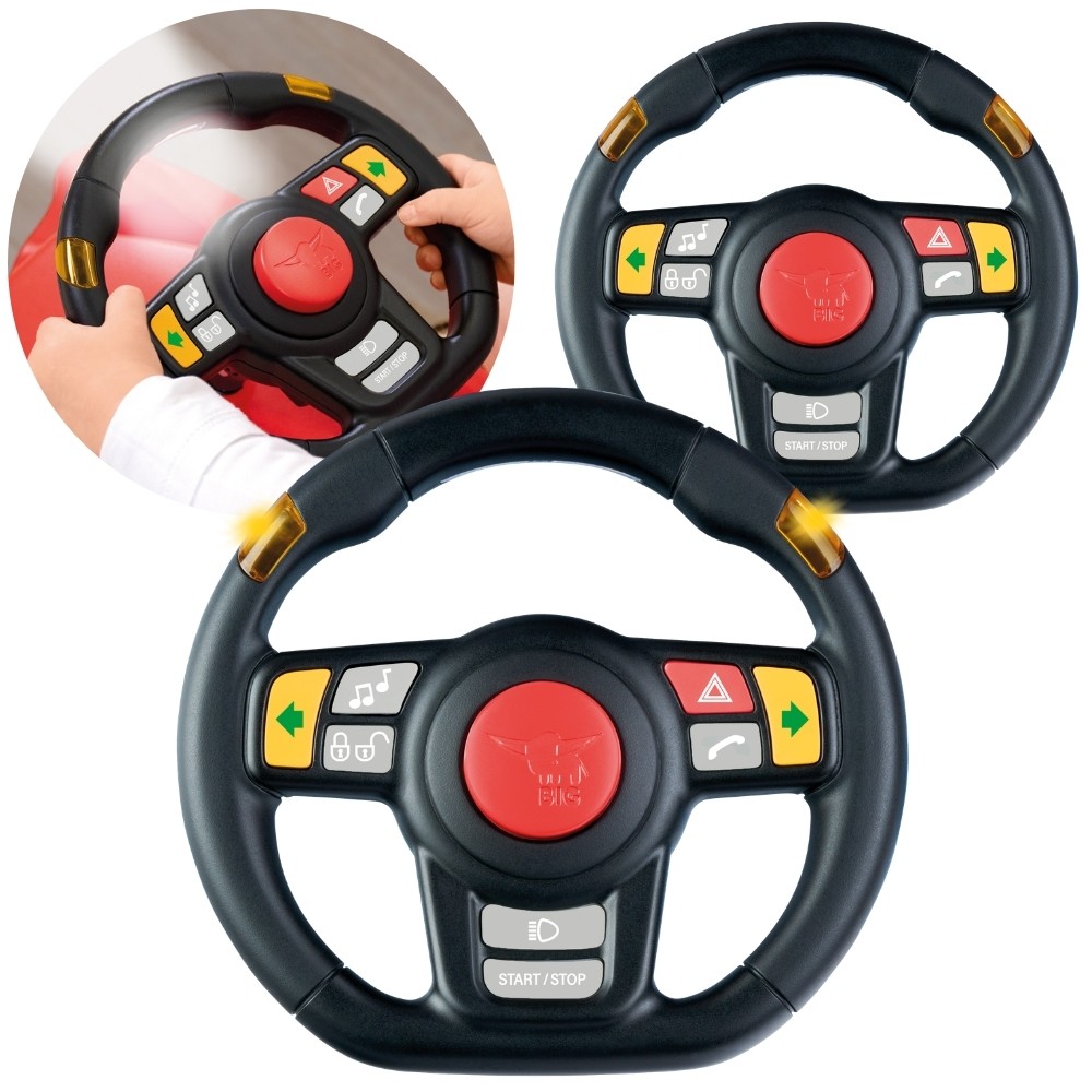 BIG Bobby Car Racing – pažangus interaktyvus vairo žaislas su šviesos ir garso efektais, kuris įprastą žaidimą paverčia įtraukiamu lenktynių nuotykiu. Įrengtas su LED avarinėmis šviesomis, posūkio signalais ir žibintais, suteikia realistišką vairavimo patirtį. Elektrinis signalas, radijas su BIG Bobby Car dainos melodija ir integruotas telefonas leidžia vaikams jaustis tikrais vairuotojais. Centrinis užraktas ir starto mygtukas su autentišku variklio garsu dar labiau sustiprina įtraukiančią patirtį. Tai puikus priedas prie BIG Bobby Car mašinėlės, keliantis vaikų vairavimo žaidimą į naują lygį.