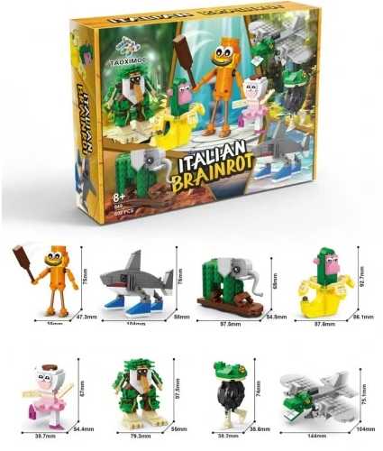 Išlaisvinkite savo vaizduotę su mūsų žavingais, išskirtiniais itališkais „Brainrot“ konstruktoriais! Įkvėpta absurdiškai žavingo Tung Sahur ir draugų pasaulio, ši kolekcija suteikia žaismingumo tradiciniams konstruktoriams. Kiekviename rinkinyje yra unikaliai sukurtų gyvūnų personažų, kurie įkvepia kūrybiškumui ir pasakojimui, puikiai tinkančių statybininkams, kurie mėgsta humoro prieskonį savo kūriniuose.