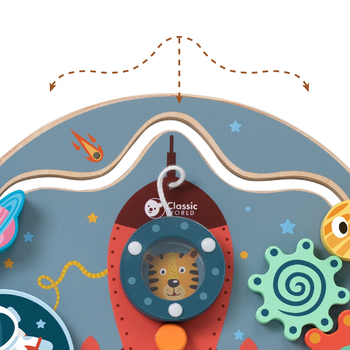 Classic World 6-in-1 veiklos lenta – tai žaislas, kuris mažyliui suteiks valandų valandas įtraukiančio žaidimo ir mokymosi. Lentoje slypi net 6 skirtingos veiklos: labirintas, karoliukai, besisukantis ratukas, mygtukai, magnetinis elementas ir rankenėlės.