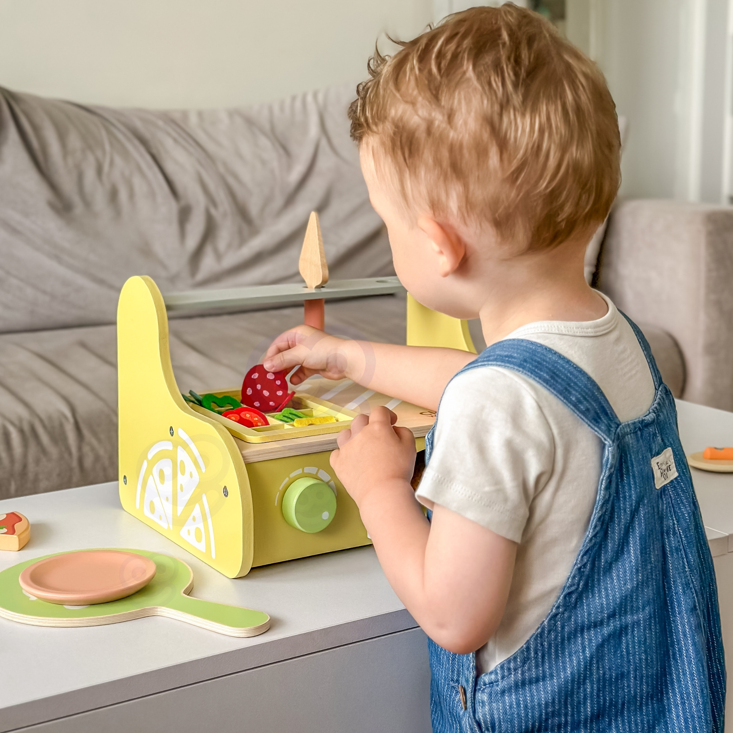 Vaikai gali mokytis „kepimo“ technikų, naudoti picos mentelę, pjaustyklę, dekoruoti picą sūriu, svogūnais, daržovėmis ir kitais priedais. Judantys elementai ir realistiškos detalės suteikia žaidimui tikroviškumo, o smulkiosios motorikos lavinimas vyksta visiškai natūraliai.