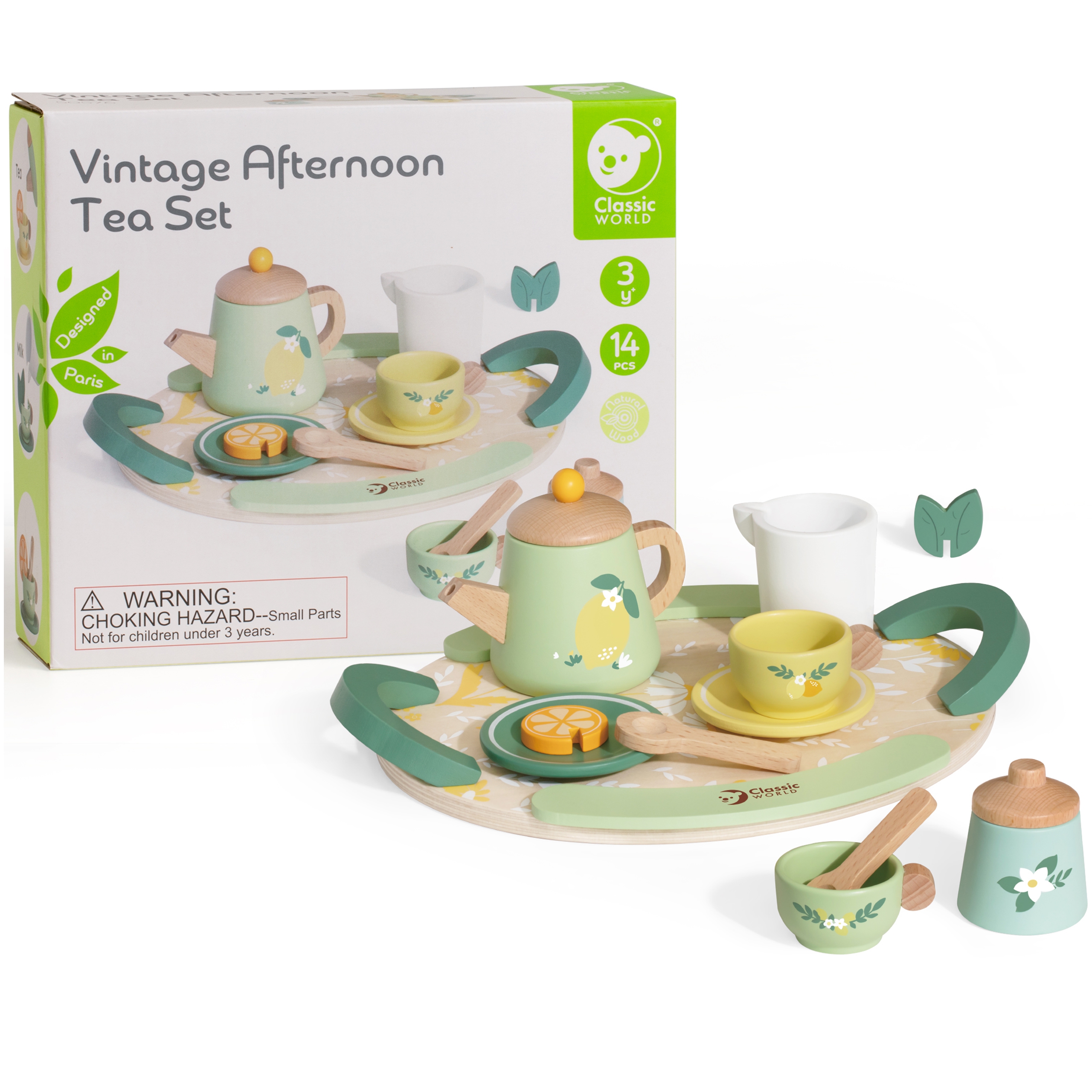 Šis „Classic World“ arbatos rinkinys – puiki idėja valandų valandas linksmintis jūsų mažyliui. Jūsų mažylis jus nustebins dar ne kartą patiekdamas gardžią arbatą . Popietės arbatą paverskite gražiu ritualu su įvairiais aksesuarais, įskaitant du skirtingų spalvų puodelius , arbatinuką ir gėlių rašto padėklą bei įvairius arbatos aksesuarus. Gražios pastelinės spalvos dar labiau paskatins jūsų vaiką žaisti. Rinkinys pagamintas iš medžio masyvo, todėl jūsų mažylis galės saugiai mėgautis patiekdamas gardžią arbatą.