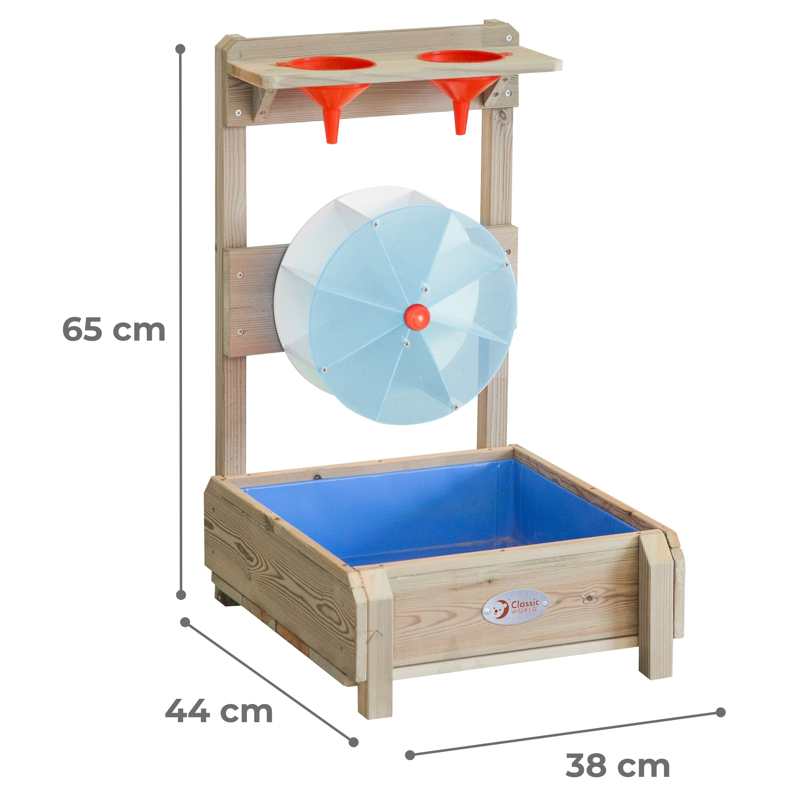 Leiskite vaikams atrasti vandens galią ir judėjimo magiją su Classic World mediniu vandens žaislu! Tai tvirtas, iš aukštos kokybės medienos pagamintas žaislas, kuris puikiai papildo smėlio dėžę ar žaidimų zoną lauke.