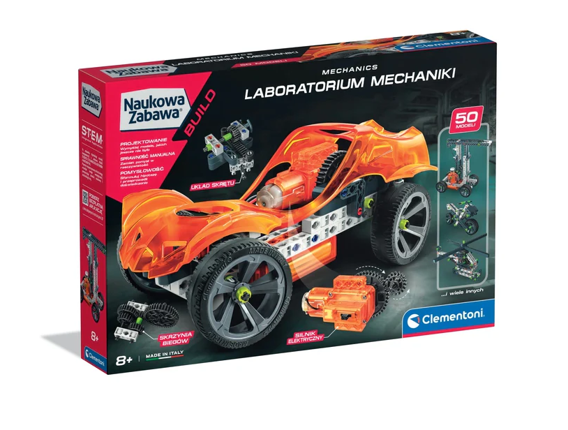 Mechanics Laboratory – tai išsamus konstravimo ir mokymosi rinkinys, leidžiantis vaikams praktiškai atrasti mechanikos, inžinerijos ir technikos pagrindus. Tai vienas universaliausių Clementoni laboratorijų rinkinių, suteikiantis galimybę kurti dešimtis veikiančių modelių ir suprasti, kaip veikia tikri mechanizmai.