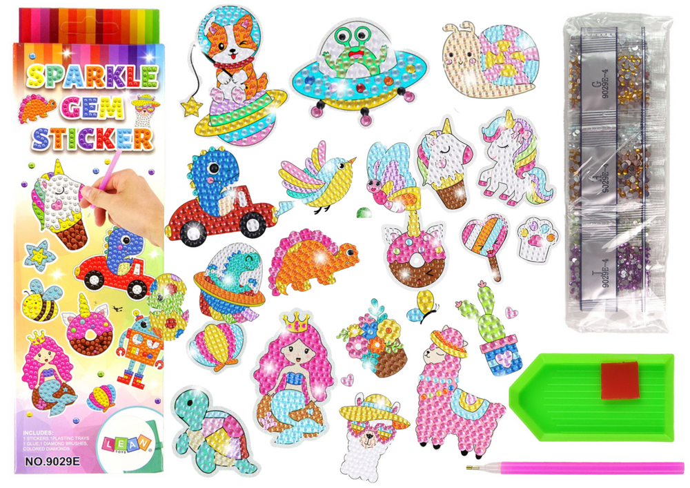 Šis rinkinys leidžia vaikams kurti žėrinčius lipdukus, dekoruotus spalvotais „deimantukais“. Tai ne tik smagus užsiėmimas – tai veikla, kuri lavina kantrybę, tikslumą, rankų–akių koordinaciją ir kūrybiškumą. Vaikas, dėliodamas mažus kristalėlius į tam skirtas vietas, mokosi susikaupti ir kruopščiai atlikti užduotis.