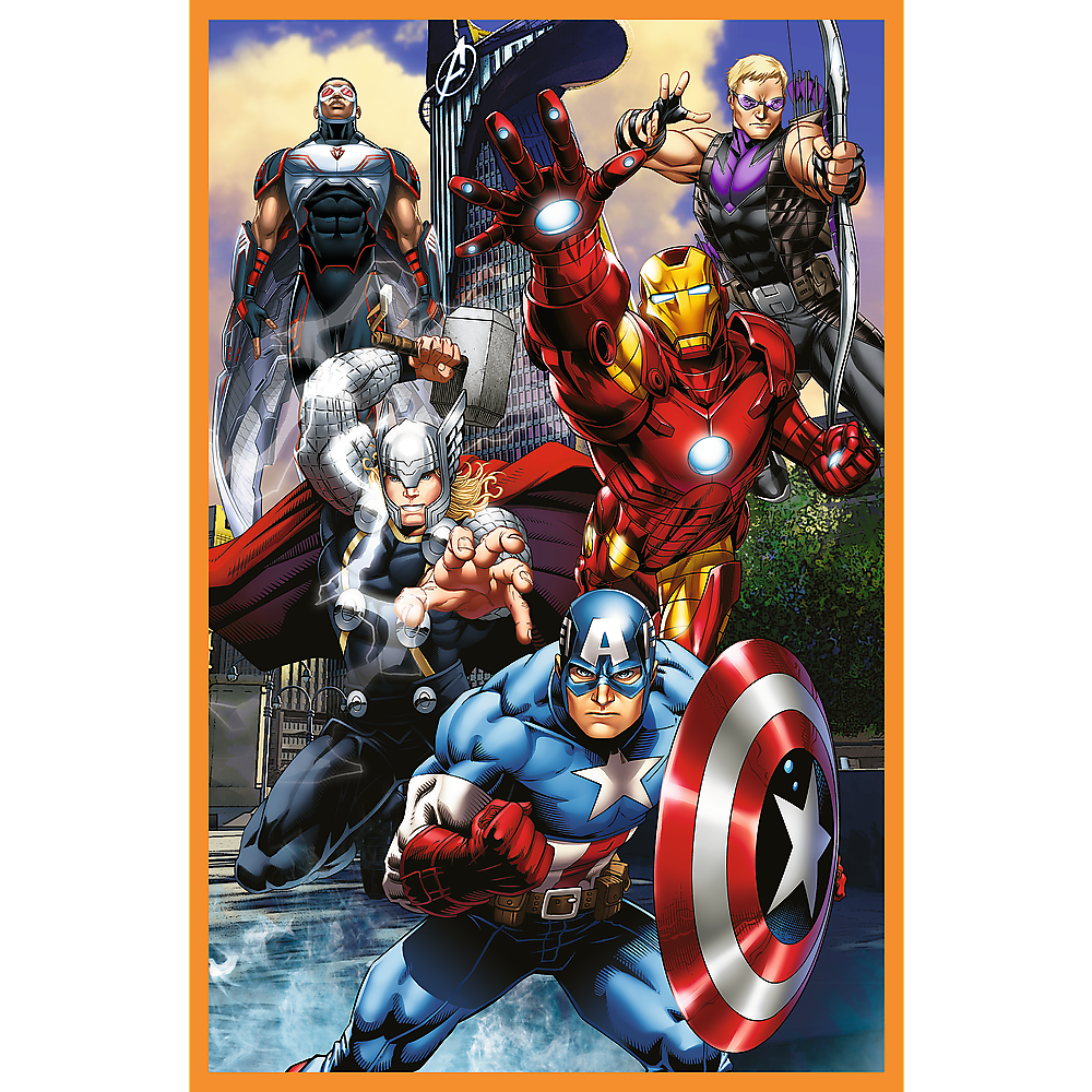 Rinkinyje pavaizduoti populiariausi „Avengers“ superherojai: Kapitonas Amerika, Juodasis Pantera, Toras, Geležinis Žmogus ir Hulkas. Kiekviena dėlionė leidžia sukurti 275 × 180 mm dydžio paveikslą, todėl vaikas gali džiaugtis ryškiais, detaliais ir įkvepiančiais herojų vaizdais.