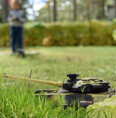 Didelis nuotoliniu būdu valdomas tankas su besisukančiu bokšteliu