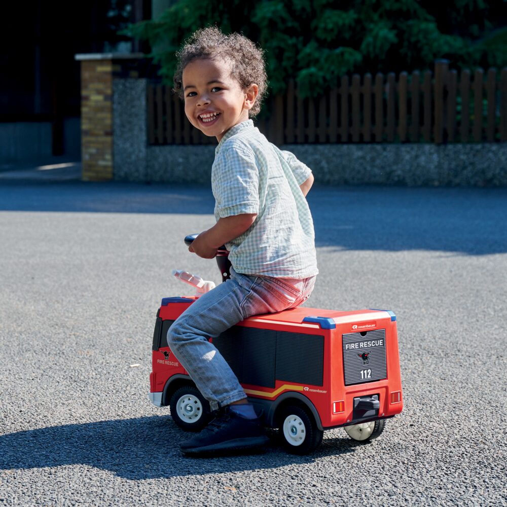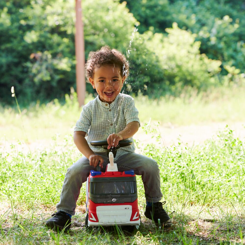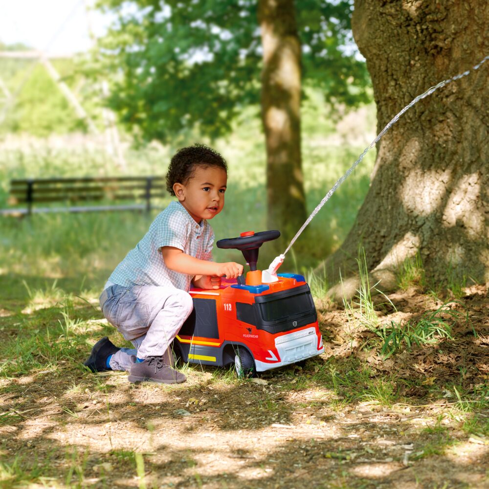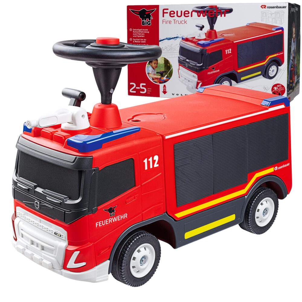 BIG „ VOLVO Fire Department Ride-On“ – tai žaislas mažiesiems veiksmo gerbėjams , imituojantis tikrą gaisrinę mašiną, šaudančią į vandenį! Vaikai gali vairuoti transporto priemonę naudodami vairą su garso signalu, kuris lavina koordinaciją ir motorinius įgūdžius . Žaislas pasižymi įvairiomis spalvomis ir detalėmis , tokiomis kaip mėlynos lemputės ir pritaikomas tekstas šone su 10 lipdukų, iš kurių galima rinktis. Šis žaislas lavina vaikų vaizduotę.