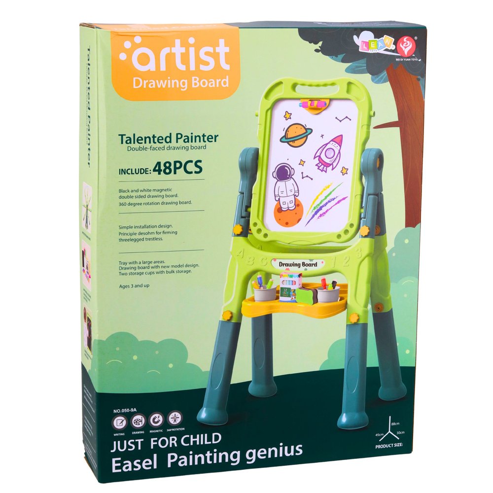 Ši dvipusė edukacinė lenta vaikams – puiki mokymosi ir kūrybinio žaidimo priemonė, skatinanti vaikus piešti, rašyti, tyrinėti ir mokytis per veiklą. Vienoje pusėje yra balta magnetinė lenta, ant kurios galima rašyti nuvalomu markeriu ir dėlioti magnetus, o kitoje – juoda kreidinė lenta, skirta piešimui kreidelėmis. Tokia įvairovė leidžia vaikui laisvai rinktis, kaip jis nori kurti ir mokytis.