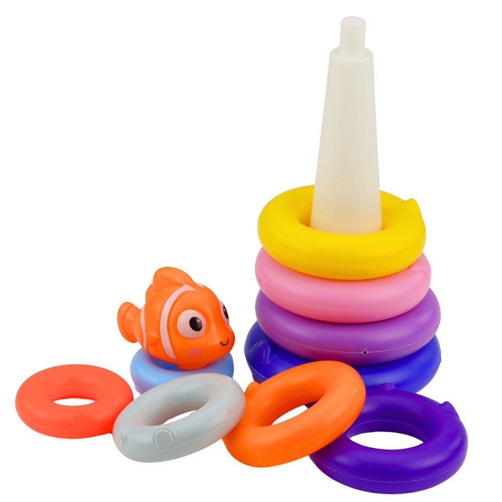 Ši spalvinga edukacinė žiedų piramidė su žavia žuvyte – puikus lavinamasis žaislas patiems mažiausiems. Klasikinė piramidės dėlionė padeda vaikams lavinti smulkiąją motoriką, judesių koordinaciją ir loginį mąstymą. Mažyliai gali dėlioti ryškius žiedus ant pagrindo ir statyti aukštą bokštą, kurio viršuje puikuojasi miela žuvytė.