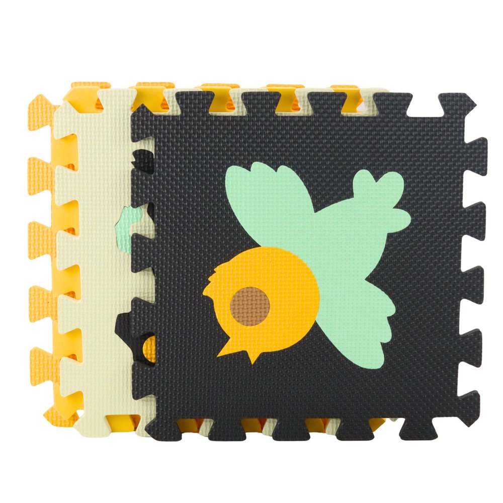 Kontrastingos spalvos – ruda, žalia, oranžinė, smėlinė ir juoda – suteikia kilimėliui modernų, jaukų įvaizdį ir dera prie įvairių interjerų. Išimamos gyvūnų formos ne tik traukia vaiko dėmesį, bet ir padeda mokytis atpažinti formas, spalvas, lavina loginį mąstymą ir smulkiąją motoriką.