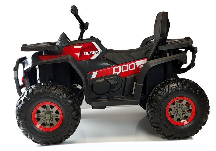 Elektrinis vaikiškas keturratis yra ryškus, tvirtas ir galingas modelis, sukurtas vaikams nuo 3 metų. Jis turi keturis 45 W variklius, 12 V 10 Ah akumuliatorių, EVA ratus, minkštą eko odos sėdynę ir modernią garso sistemą su USB, SD, MP3 AUX ir Bluetooth. Dėl dažytos („painted“) rožinės spalvos šis modelis atrodo itin prabangiai ir išsiskiria iš kitų keturračių.