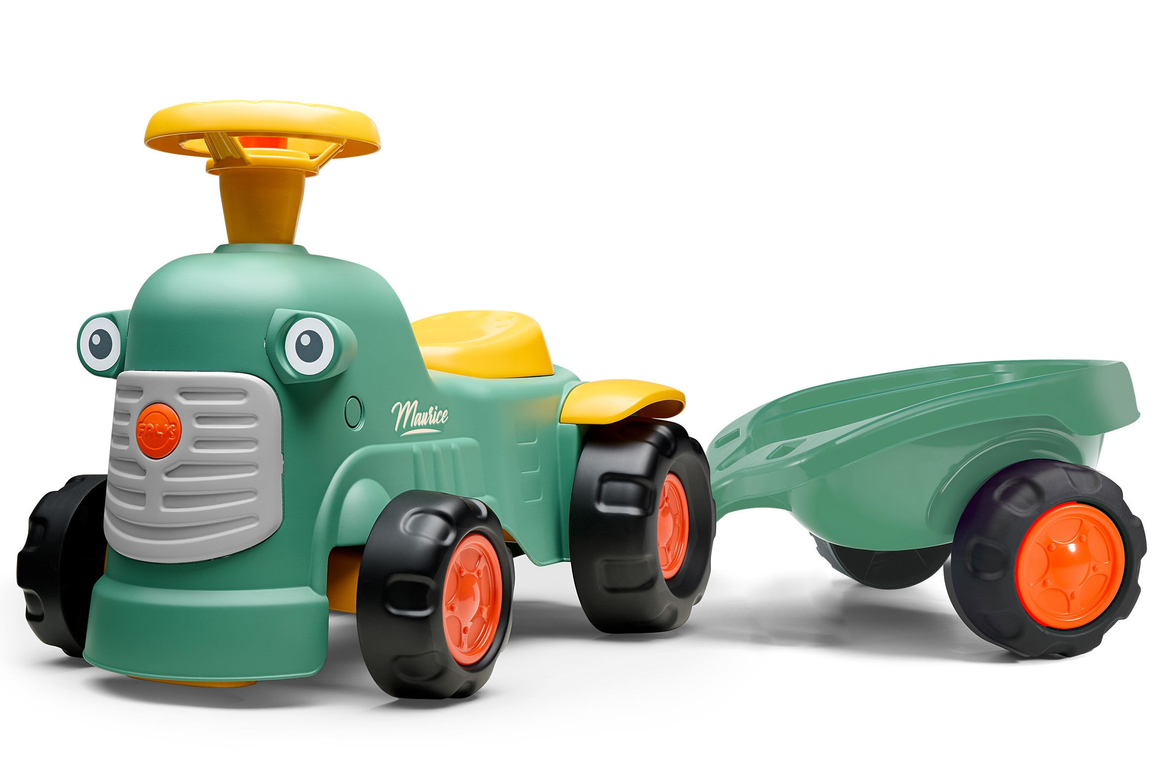 FALK Maurice Ride-On Tractor – žavingas ir sumanus stumdukas mažiesiems, sukurtas retro stiliumi ir pagamintas 100% Prancūzijoje. Siekiant tausoti aplinką, traktoriukas pagamintas iš 90% perdirbto plastiko, todėl tai puikus pasirinkimas tėvams, vertinantiems tvarumą.